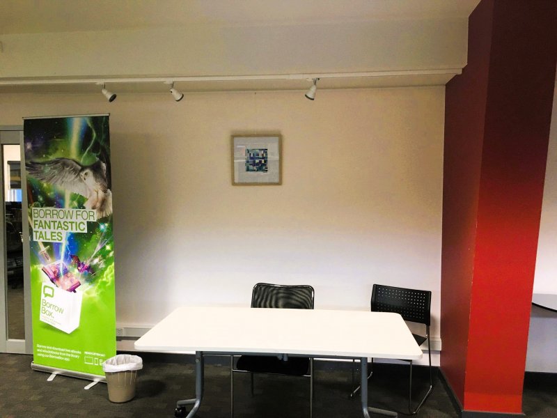 There is a total of approximately 15m of wall hanging space around the outer walls of Colac Library. This is fitted with track lighting and wire/line with height-adjustable hooks.