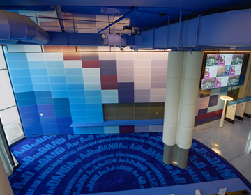 A video wall of over 4.19m screens news and information. Print newspapers and mobile devices also allow people to catch up on daily news and current affairs.